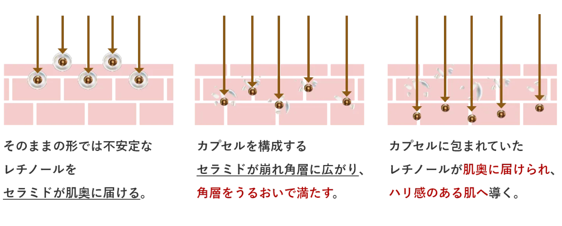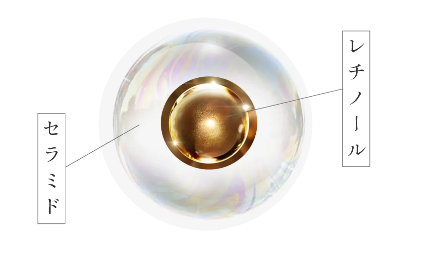 セラミドカプセルでナノサイズ化したレチノールを包むことで