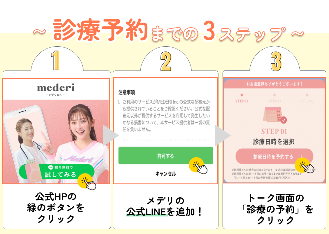 ☑︎ 予約〜処方までLINEで完結できる!