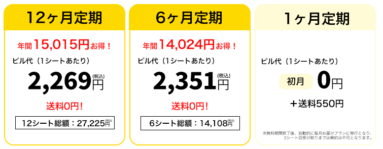 12ヶ月シート一括プランだと価格が安くなるだけじゃなく、ピルが手元からなくなる心配もないので忙しい方にはメリットがたくさん♪