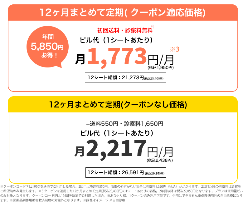 2:1年続けると毎月のピル代が10%オフ!